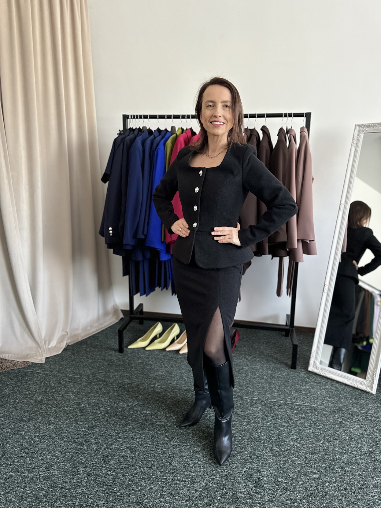 Juodas kostiumėlis su sijonu Solidumas